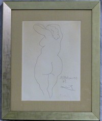 46 - PABLO PICASSO ETCHING 'FEMME VUE DE DOS' SIGNED Pablo Picasso (Spanish, 1881-1973) etching titled 'Femme Vue De Dos' depicting a nude female figure. Signed lower right in red. Numbered lower left 93/125. Plate size 14 1/2" (36.8cm) x 10 3/4" (27.3cm) + 4" (10cm) mat and frame.