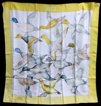9 - HERMES PARIS 'PAVOIS' SILK SCARF PHILIPPE LEDOUX Hermes Paris 'Pavois' silk scarf in yellow by Philippe Ledoux. Measures 35" (89cm) square.
