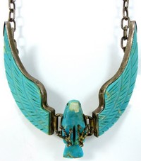 25 - NAVAJO STERLING EAGLE NECKLACE BOWIE LIVINGSTON Charlie Bowie and Ben Livingston Navajo sterling silver and turquoise soaring eagle necklace. Signed by both artists to back of eagle. Eagle measures 4" (10cm) width, each side of chain measures 7 1/2" (19cm). Total weight 47.2g.