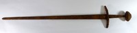 36 - MEDIEVAL IRON VIKING SWORD Medieval Iron Viking sword in excavated condition. Blade shows central flute on each side of blade. Found buried under water close to a citadel near Cologne, Germany. Includes custom fitted wooden box. Sword measures 38 1/4" (97cm) length.