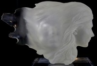 7 - FREDERICK HART 'MEMOIR' ACRYLIC SCULPTURE Frederick E. Hart (1943-1999) double-casted lucite sculpture titled 'Memoir'. Depicts a large naturalistic block of lucite with two nude female figurines emerging from either side. Signed to lower side of sculpture. Initialed, numbered and dated 1985 to opposite side of sculpture. Measures 9 1/2" (24cm) height + 2 1/4" (5.5cm) lucite base. Includes lighted and manually rotating pedestal measuring 44 1/2" (113cm) height x 12" (30.5cm) square.