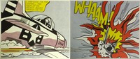 11 - ROY LICHTENSTEIN 'WHAAM!' DIPTYCH SIGNED Roy Lichtenstein (American, 1923-1997) diptych consisting of two original color offset lithographs depicting comic book renditions of military jets. Titled 'Whaam!'. Each marked to bottom: "Published by The Tate Gallery, London, Roy Lichtenstein: Whaam! 1963, Reproduced and printed in Great Britain by Lautrec Photo Litho Ltd Leads, 3M682". Published in June 1982. Pencil signed to second panel, lower right. Each lithograph measures 29 3/8" (74.6cm). x 25" (63.5cm).