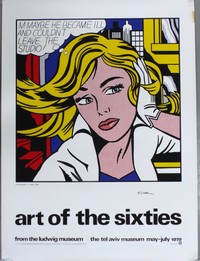 12 - ROY LICHTENSTEIN M-MAYBE SILKSCREEN POSTER SIGNED Roy Lichtenstein (American, 1923-1997) color silkscreen exhibition poster 'Art of the sixties', The Tel Aviv Museum from the Ludwig Museum, 1979. Signed in black ink lower right. Measures 55" (139.7cm) x 39 1/2" (100.3cm).