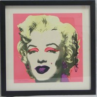 13 - ANDY WARHOL MARILYN SILKSCREEN ANOUNCEMENT SIGNED Andy Warhol (American, 1928-1987) announcement / invitation depiction Marilyn Monroe. Published by Castelli Graphics, New York, printed by Colour Editions, Inc. Signed in black marker to right edge. Numbered in pencil #XX201 to verso, lower left. Measures 12" (30.5cm) square + 2 1/4" (5.7cm) mat & frame.