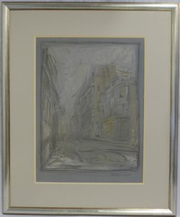15 - ALBERTO GIACOMETTI RUE D'ALESIA LITHOGRAPH SIGNED Alberto Giacometti, (Swiss, 1901-1966) color lithograph titled 'Rue D'Alesia'. Edition of 200. Signed and numbered (faded) lower right. Measures 26 3/4" (68cm) x 20" (51cm) + 6 1/4" (15.8cm) mat & frame.