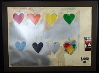 16 - JIM DINE EIGHT HEARTS LITHOGRAPH Jim Dine 'Look at Dine' lithograph, Galerie Thomas, Munchen. Includes Jim Dine, Armory Art Center, 2006 invitation. Measures 35" (89cm) x 25 1/4" (64cm) + 2 1/2" (6.3cm) mat & frame.