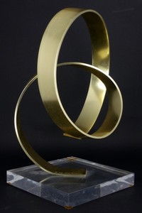18 - DAN MURPHY ABSTRACT BRASS SCULPTURE Dan Murphy abstract brass sculpture on lucite base. Signed and dated 1978. Measures 11 3/4" (30cm) height + 7/8" (2.2cm) lucite base.