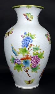 26 - HEREND QUEEN VICTORIA PORCELAIN VASE 13" Herend porcelain vase in the Queen Victoria pattern. Marked to underside and numbered 6961 / VBO. Measures 12 5/8" (32cm) height.