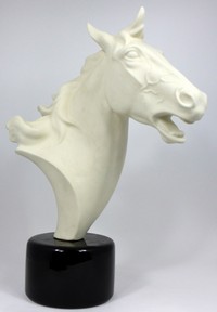 32 - KERAMOS AUSTRIAN CERAMIC HORSE HEAD Keramos Vienna Austria ceramic sculpture depicting a horse's head. Marked to underside of base. Measures 11 1/4" (28.5cm) height + 3" (7.6cm) base.