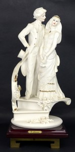 33 - GIUSEPPE ARMANI BRIDE & GROOM SCULPTURE Giuseppi Armani figural group depicting a bride and groom and spiraling staircase. Signed to backside. Measures 12" height (30.5cm) + 1 3/4" (4.5cm).