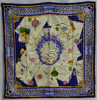 20 - HERMES PARIS SILK SCARF Hermes Paris silk scarf having depictions of lion medallions, ropes, tassels, chains and belts. Measures 34" (86cm) square.