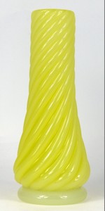 41 - MURANO ART GLASS VASE w RIBBED SPIRAL DESIGN Murano art glass vase with ribbed spiraled design. Pale yellow in color. Original label to underside. Measures 8 3/4" (22.2cm) height.