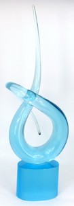 47 - RENATO ANATRA MURANO FREEFORM ART GLASS SCULPTURE Renato Anatra Murano freeform art glass sculpture having a blue hue, raised on a frosted oval base. Signed to underside. Measures 20 1/2" (52cm) height.