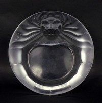 49 - LALIQUE TETE DE LION CRYSTAL ASHTRAY Lalique crystal ashtray in the 'Tete de Lion' pattern. Signed to underside. Measures 5 3/4" (12cm) width.