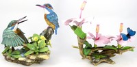 5 - 2pc BOEHM PORCELAIN SEMINOLE HIBISCUS & KINGFISHER 2 pieces of Boehm porcelain including Seminole Hibiscus with Morpho Rhetenor Butterfly and Kingfisher. Each marked to underside. Largest measures 11" (28cm) height and width.
