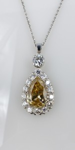 6 - 3.4ct NATURAL LIGHT BROWN DIAMOND PLATINUM PENDANT Platinum chain and pendant having 3.40ct natural light brown diamond to center, pear shape. Containing 14 round diamonds, total weight 1.12cts, approx VS2, G color. One round diamond of .40cts, VS2, G color. Pendant measures approx 31mm length. Chain measures 16" (40.5cm) length. Total weight 8.1g. Includes appraisal from C & M Jewelers and laboratory results from Joseph W. Tenhagen Gemstones, Inc.