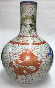 9 - LARGE CHINESE FAMILLE ROSE PORCELAIN BOTTLE VASE Large Chinese Famille Rose porcelain Tianqiu porcelain bottle vase. Marked to underside. Measures 23" (58.5cm) height x 16" (40.5cm) width.