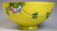 11 - CHINESE YELLOW GLAZED PORCELAIN BOWL Chinese yellow glazed porcelain bowl with floral design. Measures 7 1/2" (19cm) diameter.