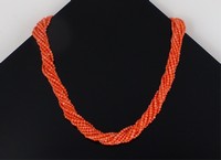 18 - TIFFANY 10-STRAND CORAL STERLING SILVER NECKLACE Tiffany & Co torsad necklace having 10 beaded strands of salmon coral and sterling silver T & O toggle clasp. Marked to clasp. Measures 17 1/4" (43.8cm) length. Total weight 42.2g.