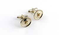 19 - PR TIFFANY & CO STERLING 14k YG 'BUTTON' CUFFLINKS Pair of Tiffany & Co vintage sterling silver cufflinks with 14kt yellow gold accent. Each marked to backside. Button measures 18mm diameter. Total weight 11.5g.