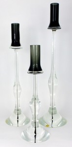 1 - 3pc CENEDESE MURANO GLASS CANDLESTICK HOLDERS 3 Cenedese Murano art glass candle holders. Each colorless and black with linear decoration to stylized body. Each signed Cenedese Murano to underside. Tallest measures 18" (45.7cm) height.