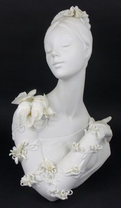 31 - LLADRO 'MY FAIR LADY' PORCELAIN BUST w BOX Lladro porcelain bust titled 'My Fair Lady' #8024. Bisque bust decorated with lace ribbons and flowers. Marked to underside. Includes original box. Figure measures 13 1/2" (34cm) height.