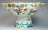39 - CHINESE FAMILLE ROSE PORCELAIN STEM BOWL Chinese Famille Rose porcelain stem bowl having floral depictions to exterior with turquoise glazed interior. Measures 8 1/2" (21.5cm) diameter.