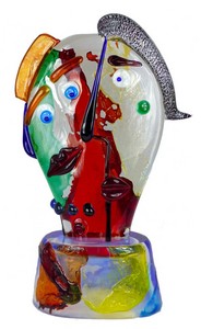 43 - WALTER FURLAN MURANO GLASS PICASSO SCULPTURE Walter Furlan Murano art glass sculpture depicting two interconnected faces. Homage to Picasso. Signed to side of base and inscribed Vivarini Murano to top edge of base. Measures 24 1/2" (62cm) height x 15" (38cm) width.