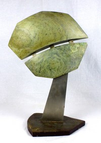 7 - GEORGE JENKINGS ABSTRACT MARBLE & STEEL SCULPTURE George Jenkings (British, 20th C) abstract marble and steel sculpture. Signed to marble base. Measures 20 1/4" (51.5cm) height.