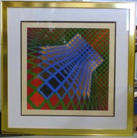 8 - VICTOR VASARELY ORIGINAL SERIGRAPH Victor Vasarely (French/Hungarian, 1906-1997), Optical Colors, serigraph. Pencil signed lower right and numbered 122/250 lower left. Measures 28 1/2" (72.3cm) square + 6 1/4" (15.8cm) mat & frame.