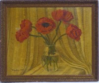 27 - JULI YULEVICH KLEVER JR 'POPPIES' OIL ON BOARD Juli Yulevich Klever Jr (Russian, 1882-1942) oil painting on board depicting a still life scene with flowers. Signed lower left. Measures 20 3/4" (52.7cm) x 16 3/4" (42.5cm) + 1 3/4" (4.5cm) frame.