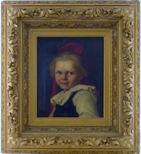 29 - CARL WATZELHAN OIL PAINTING ON CANVAS 1891 Carl Watzelhan (Austrian, 1867-1942) oil painting on canvas depicting a portrait of a young girl. Signed and dated 1891 upper left. Measures 11 1/2" (29cm) x 9 5/8" (24.5cm) + 5" (12.7cm) frame.
