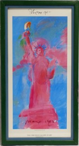 30 - PETER MAX CORCORAN GALLERY HAND SIGNED POSTER Peter Max (b. 1937, New York / Germany) 1981 Statue of Liberty poster for Corcoran Gallery of Art exhibition, Washington D.C. Hand signed and dated 1982. Measures 24 1/2" (62cm) x 12" (30.5cm) + 1 1/2" (3.7cm) frame.
