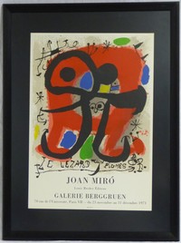 38 - JOAN MIRO 'GALERIE BERGGRUEN' LITHOGRAPH Joan Miro lithographic exhibition poster 'Le Lexard aux Plumes d'Or' Galerie Berggruen, November 23 to December 31, 1971. Inscribed Mourlot lower center. Measures 27 1/2" (69.8cm) x 19 1/2" (49.5cm) + 4 1/4" (10.8cm) mat & frame.