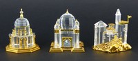 42 - 3pc SWAROVSKI CRYSTAL JOURNEYS TEMPLES 3 Swarovski crystal and gilt metal temples from the Crystal Memories Journeys series. Includes Taj Mahal, Mosque and Castle. Each marked to underside and measures 2 1/8" (5.5cm) height.