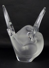 9 - PR LALIQUE FROSTED CRYSTAL SWANS Pair of Lalique French frosted crystal swans. Includes swan with head up and swan with head down. Each signed Lalique France under tail. Largest measures 14" (35.5cm) length.