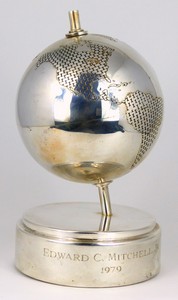 4 - TIFFANY & CO STERLING SILVER GLOBE Tiffany & Company sterling silver spinning globe. Marked Tiffany & Co Makers, Sterling Silver, 925-1000. Measures 8 3/8" height. Total weight 33ozt (1025g) included weighted wood base.