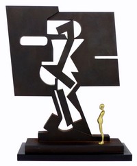 6 - ERNEST TROVA 'TRISTIAN GOX' BRONZE SCULPTURE Ernest Trova (American, 1927-2009) bronze and steel sculpture with black oxide patination. Titled 'F.M. Gox (Tristan Gox)' 1976. Signed E. Trova, titled, numbered 53/125, inscribed Pace Editions and numbered 1976 to underside. Measures 11" (28cm) height.