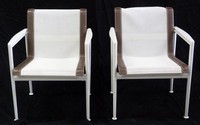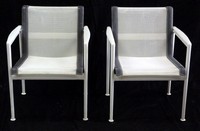 11 - 2pc RICHARD SCHULTZ FOR KNOLL DINING ARM CHAIRS 4 Richard Schultz dining arm chairs by Knoll. Each having white mesh and vinyl trim on a cast aluminum frame. Each measures 30" (76cm) height x 24" (61cm) depth x 23 1/4" (59cm) width.
