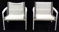 12 - 4pc RICHARD SCHULTZ FOR KNOLL LOUNGE CHAIRS 4 Richard Schultz lounge chairs by Knoll. Each having white mesh and vinyl trim on a cast aluminum frame. Each measures 26" (66cm) height x 26" (66cm) depth x 26" (66cm) width.