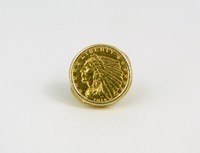 39 - 1915 2 1/2 DOLLAR INDIAN HEAD GOLD COIN RING 1915 US 2.5 Dollar Indian Head gold coin mounted as a ring. 14kt yellow gold setting. Ring size 4. Total weight 5.9dwt (9.1g).