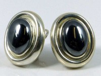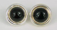 50 - PR PALOMA PICASSO TIFFANY STERLING & ONYX EARRINGS Pair of Paloma Picasso for Tiffany & Company sterling silver earrings with black onyx cabochons. Each marked Paloma Picasso, Tiffany & Co, Sterling and measures 15/16" (2.2cm) diameter,.