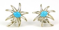 43 - PR TIFFANY STERLING & TURQUOISE FIREWORKS EARRINGS Pair of Tiffany & Company sterling silver earrings with onyx cabochons in the 'Open Fireworks' design. Each marked Tiffany & Co, 925, Fireworks, 1995 and measures 1 1/8" (2.8cm) length.