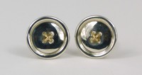 44 - PR TIFFANY STERLING & 14kt YG BUTTON CUFFLINKS Pair of Tiffany & Company sterling silver and 14kt yellow gold cufflinks in the form of buttons. Each marked Tiffany & Co, 14kt, Sterling. Each measures approx 18mm diameter.