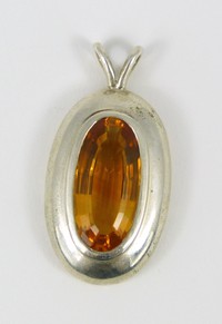 45 - TIFFANY & CO CITRINE & STERLING SILVER PENDANT Tiffany & Company sterling silver pendant with faceted oval cut citrine center stone. Marked Tiffany & Co, Sterling. Measures 1 1/2" (3.7cm) length.