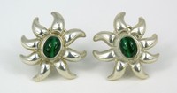46 - PR TIFFANY STERLING & MALACHITE ANEMONE EARRINGS Pair of Tiffany & Company sterling silver earrings with malachite cabochons in the form of sea anemone. Each marked Tiffany & Co, 925 and measures 1 1/8" (2.8cm) length.