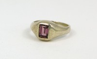 47 - TIFFANY & CO STERLING & RUBELLITE PINKY RING Tiffany & Company sterling silver and rubellite pinky ring. Marked Tiff & Co, STR. Ring size 5.