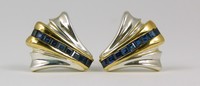 48 - PR TIFFANY STERLING 14kt YG SAPPHIRE EARRINGS Pair of Tiffany & Company Art Deco style sterling 14kt yellow gold and sapphire fan form earrings. Each marked T & Co, STR, 14K and measures 7/8" (2.2cm) height and width,
