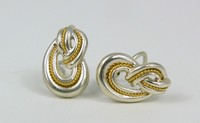 49 - PR TIFFANY & CO STERLING 18kt YG KNOT EARRINGS Pair of Tiffany & Company sterling silver earrings of knot form with 18kt yellow gold twisted accent. Each marked Tiffany & Co, 925, 750 and measures 3/4" (1.9cm) length.