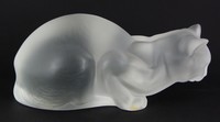 51 - LALIQUE 'CHAT COUCHE' CRYSTAL CAT SCULPTURE Lalique French frosted crystal sculpture in the form of a crouching cat. Titled 'Chat Couche'. Signed to underside. Measures 9" (22.8cm) length.